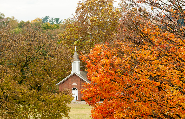 In the 1930s, then-director of the IMU, Rufus H. Fitzgerald, was part of a group pushing to reestablish a place for quiet meditation on campus—there had been no chapel on campus since 1892, when North Hall was converted to a library—and he found an old church he liked in northeastern Johnson County. Rather than move St. John’s Methodist Church, a.k.a. “Old Zimmerman’s Church,” the group decided to recreate it near the site of the IMU, and a UI architect made scale drawings of the chapel’s exterior and interior. Lack of funds put those plans on hold until 1950, when William H. Danforth of St. Louis, Missouri, offered to bankroll the project. Danforth Chapel was completed to the southwest of the IMU in 1952.