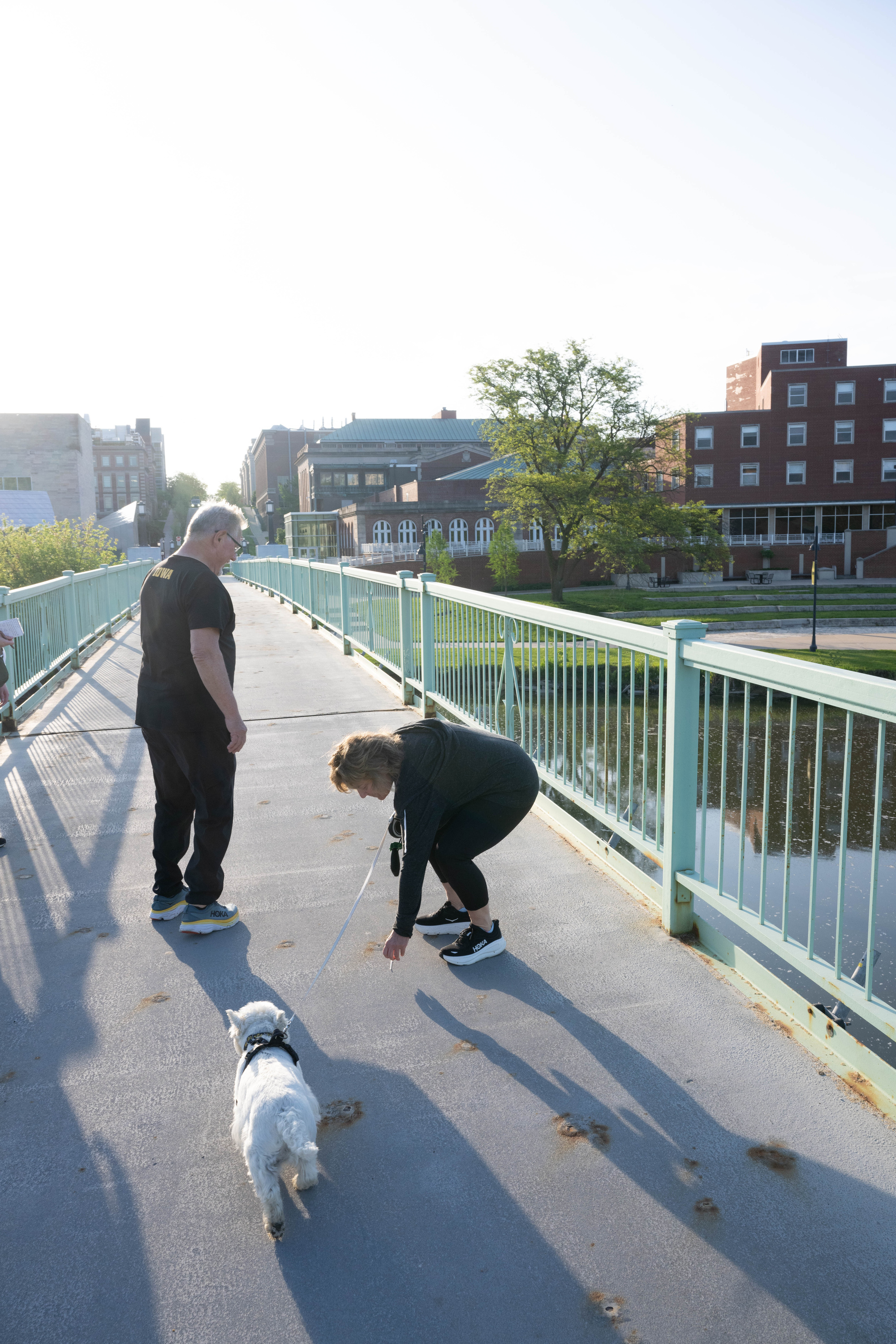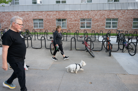 If you commute through campus in the early morning, you might spot University of Iowa President Barbara Wilson out on her daily walk with her husband, John Lammers, and their dog, Ollie.