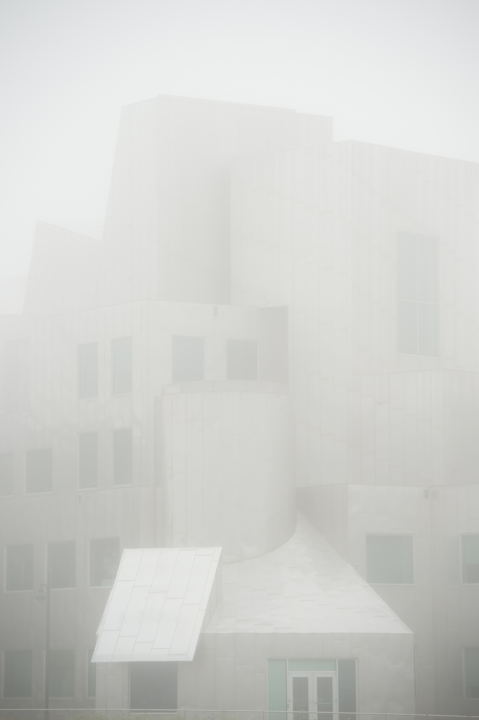 His vision for Iowa’s laser technology lab was to expand this new expression, referred to by many as “deconstructivism,” with a larger building and one centered on the use of stainless-steel surfaces. Dramatically positioned on the east bank of the Iowa River, it would reflect the sun, the sky, and the surrounding campus. As would become a common theme in Gehry projects, he incorporated references to fish within this “near the water” project. The exterior of the building would be clad in overlapping sheets of steel, visually imitating fish scales. On the east side of the building, he included a large copper shell, literally intended to represent a giant fish.